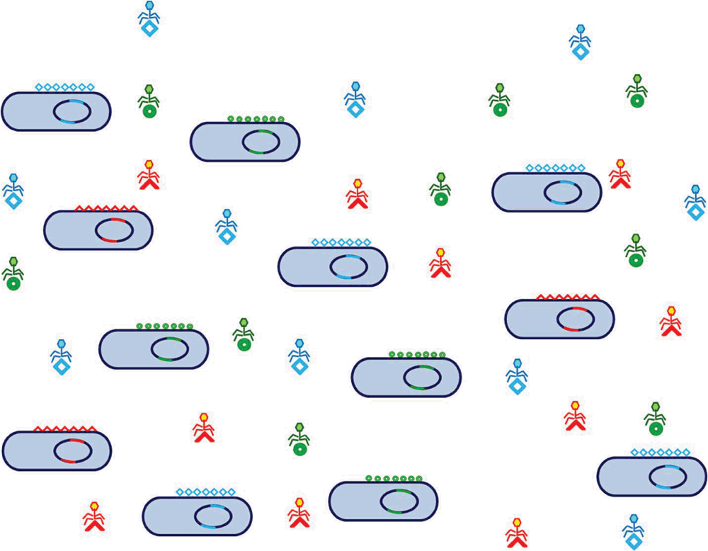 Figure 2. A prokaryotic population with cells and phages, as depicted by the Constant-Diversity model.
