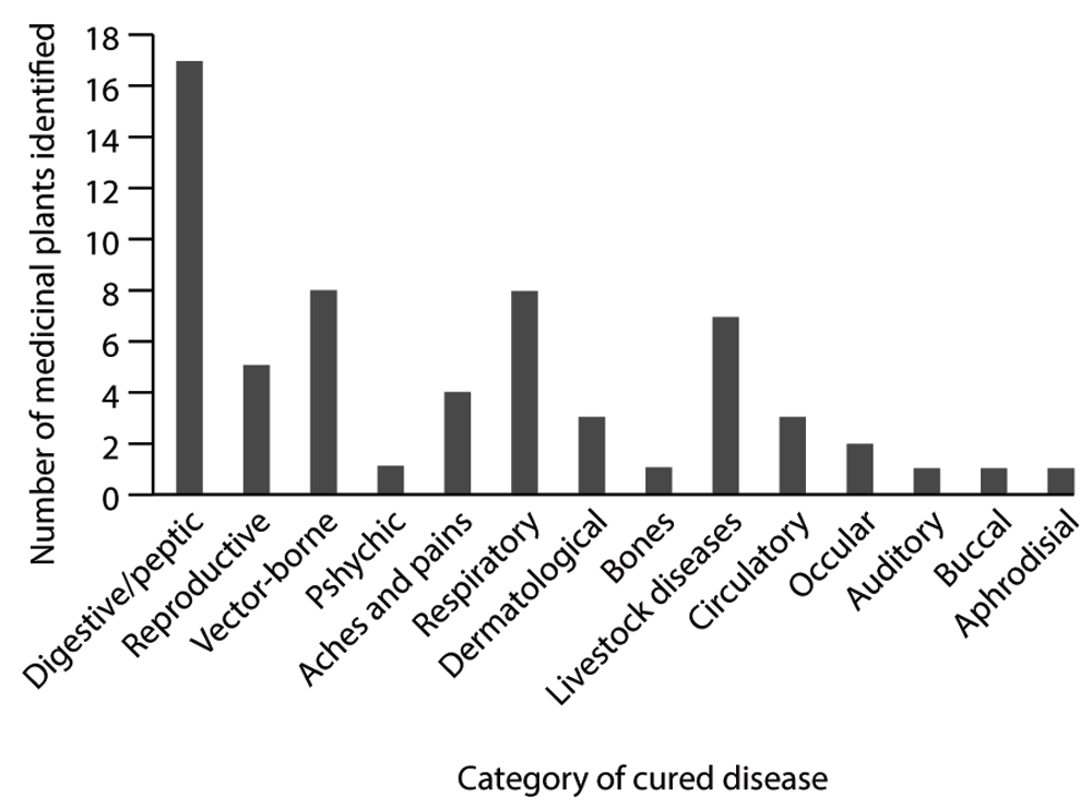 How were the disease classes chosen? The “vector-borne” class is not a type of disease, but rather a way of transmission. It can include digestive, psychic, or other types. Furthermore, several common ailment categories were not reported to be treated with medicinal plants. Explanations should have been provided as to why. Authors should have followed, for example, Cook’s (1995) classification : Cook FEM (1995) Economic Botany Data Collection Standard. Kew: Royal Botanic Gardens.