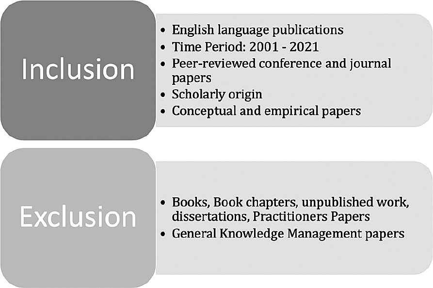This paper provides a comprehensive overview of existing work with emphasis on established and emerging critical factors. TMS and trust as KC factors in IT were investigated. Figure 1 shows this study’s scope.