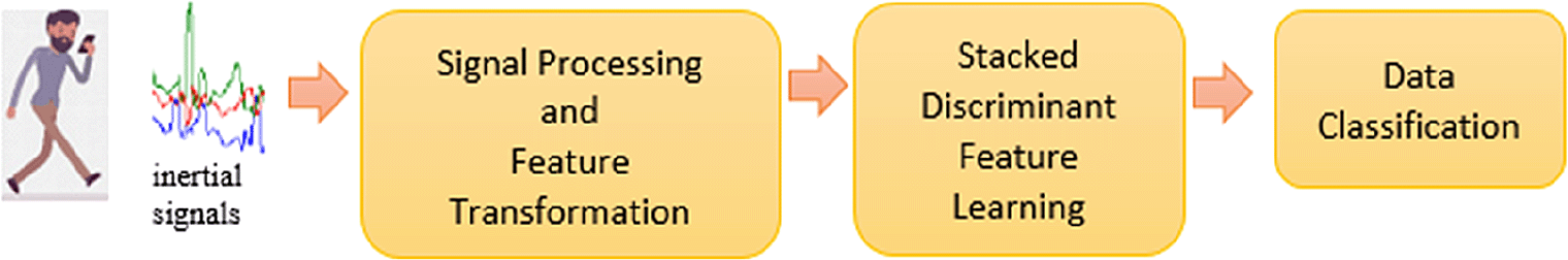 Thus, a stacking-based deep learning model for smartphone-based HAR is proposed. Inspired by the hierarchical learning in the DNNs, the proposed stacked learning network is aggregated with multiple learning modules, one after another, in a hierarchical framework. Specifically, a discriminant learning function is implemented in each module for discriminant mapping to generate discriminative features, level by level. The lower (generic) to higher level (deeper) features are input to a classifier for activity identification. This proposed approach is termed Stacked Discriminant Feature Learning, coined as SDLF.