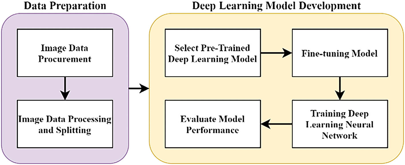 The methodology of this work was done at Multimedia University, Cyberjaya, from June 2020 to May 2021. The overall methodology of this research is as illustrated in Figure 1, with two major stages. In the data preparation stage, pathology images of pancreas tissue samples were obtained from our collaborator and the images were pre-classified by a pathologist into four classes. In the DL model development stage, the images were trained on the DL model and evaluated accordingly. All stages were carried out using Jupyter notebook in Google Colab. The source code is available from GitHub and archived with Zenodo.24