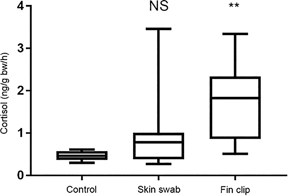 Skin swabbing and fin clipping appear to be equally useful when amplifying genes to identify fish. We next examined whether mucus cross contamination occurs in fish held at high density, and whether either technique alters stress axis activation and behaviour following DNA collection.