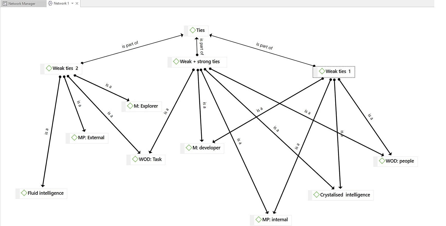 Friese et al.24 recommended the use of deductive thematic analysis when a pre-existing framework is available. Therefore, the discussions between the business experts and the students were thematically mapped using Selby's25 three problem-solving styles. These included problem-solving preferences (explorer vs. developer) which were coded as M: Explorer and M: Developer; the manner of processing (internal vs. external) coded as MP: Internal and MP: External; and finally, ways of deciding (people vs task preference) coded as WOD: People and WOD: Task. The Theory of Fluid and Crystallised Intelligence10 was used to map the type of intelligence the experts primarily demonstrated. ATLAS.ti software (Version 8.4.25.0) was used to analyse the identified themes to reflect the business experts’ responses. Acknowledging that there is available open-source software as alternatives to ATLAS.ti such as QualCoder and Tagguete, many qualitative scholarly papers adopted ATLAS.ti for its user-friendliness for coding and displaying network analysis results. Besides that, ATLAS.ti has a variety of tools to analyse unstructured data.26 Moreover, one of the researchers in this study is well-versed in using ATLAS.ti. For those reasons, ATLAS.ti was chosen.