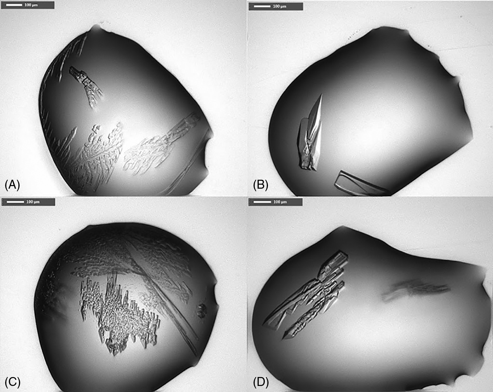 A) condition F3 from LFS, B) G3 from LFS, C) F3 from PACT premier, D) G3 from PACT premier (for composition of crystallization buffer see Table 1).