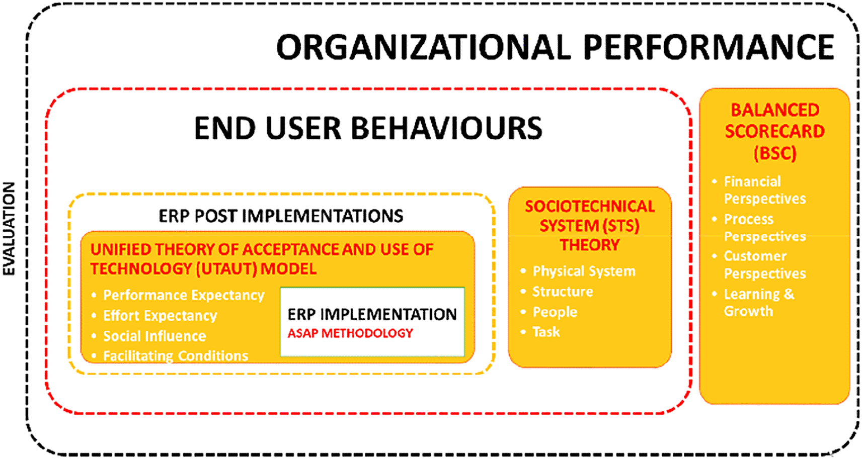 | Social Technical System (STS) Theory | The STS was developed to emphasise the critical role of interactions between individuals and processes in achieving organizational goals.15 | This STS theory suggested that combining social and technological solutions in the implementation of ERP can enhance performance. Under the STS theory, ERP performance is improved when the system is aligned to operational and social needs. User participation increases user acceptance of the system while reducing the probability of resistance.16 |