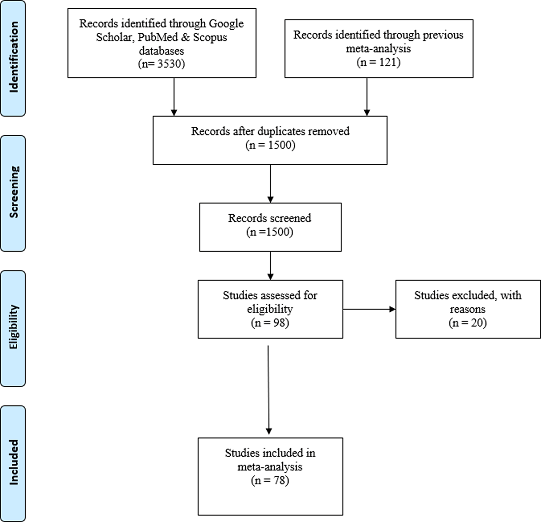 The search and selection of the studies is presented in the PRISMA flowchart in Figure 1. As shown in the flowchart, our final database comprises 78 studies, for a total of 113 effect sizes carried out by 46 different principal investigators.