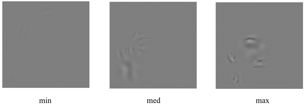 To answer this question, we compared the effectiveness of task solution for the faces formed from the areas of different contrast modulation amplitudes: maximum, minimum and medium (Figure 3). The stimuli were combined from the areas found in all the applied spatial frequency ranges.