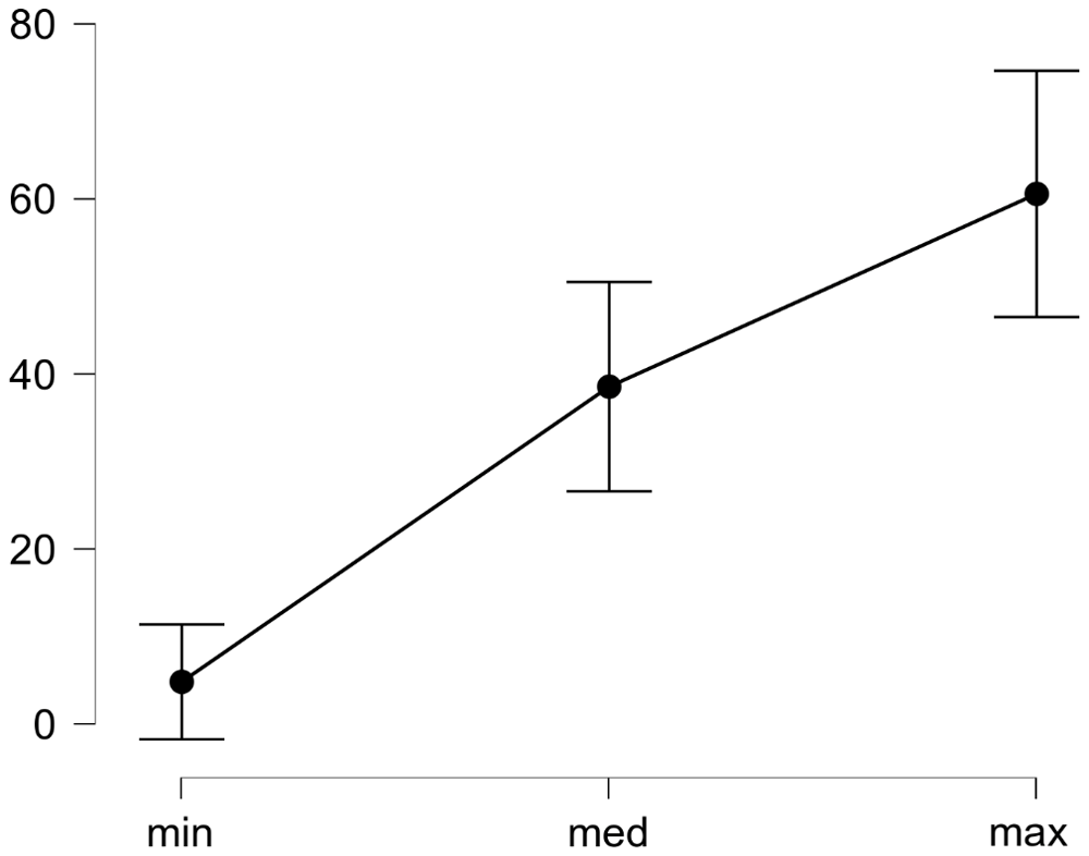 We employed a one-way design for independent samples having a three-level factor “Amplitude of modulation” (min, med, max). The percentage of correct identification of facial expressions was the dependent variable. The sample size was determined based on Anova's power = 0.8 and expected Cohen's f > 0.5 effect size. The minimum expected effect size was determined based on the results of the preview of the prepared images performed by the researchers themselves.