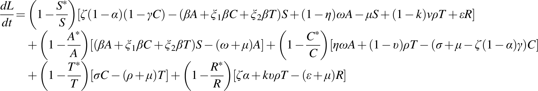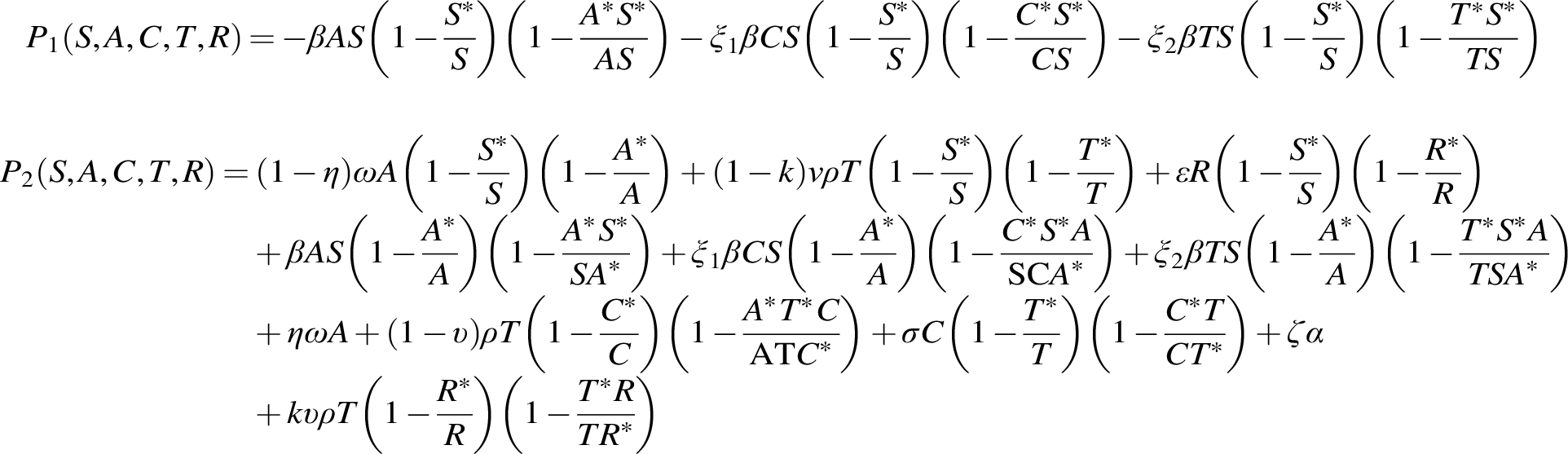 where are the susceptible populace, is the populace that are acutely infected with HBV, are the chronically/clinically infected individuals, while are individuals under treatment and are the recovered classes.