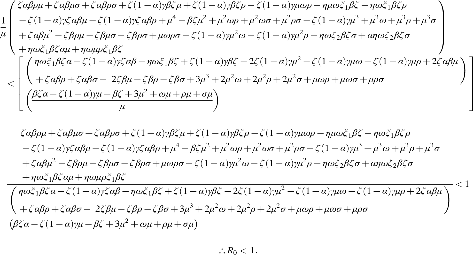 Theorem 2: The equations of the model has a positive distinctive endemic equilibrium whenever R0 > 1, which is said to be globally asymptotically stable.