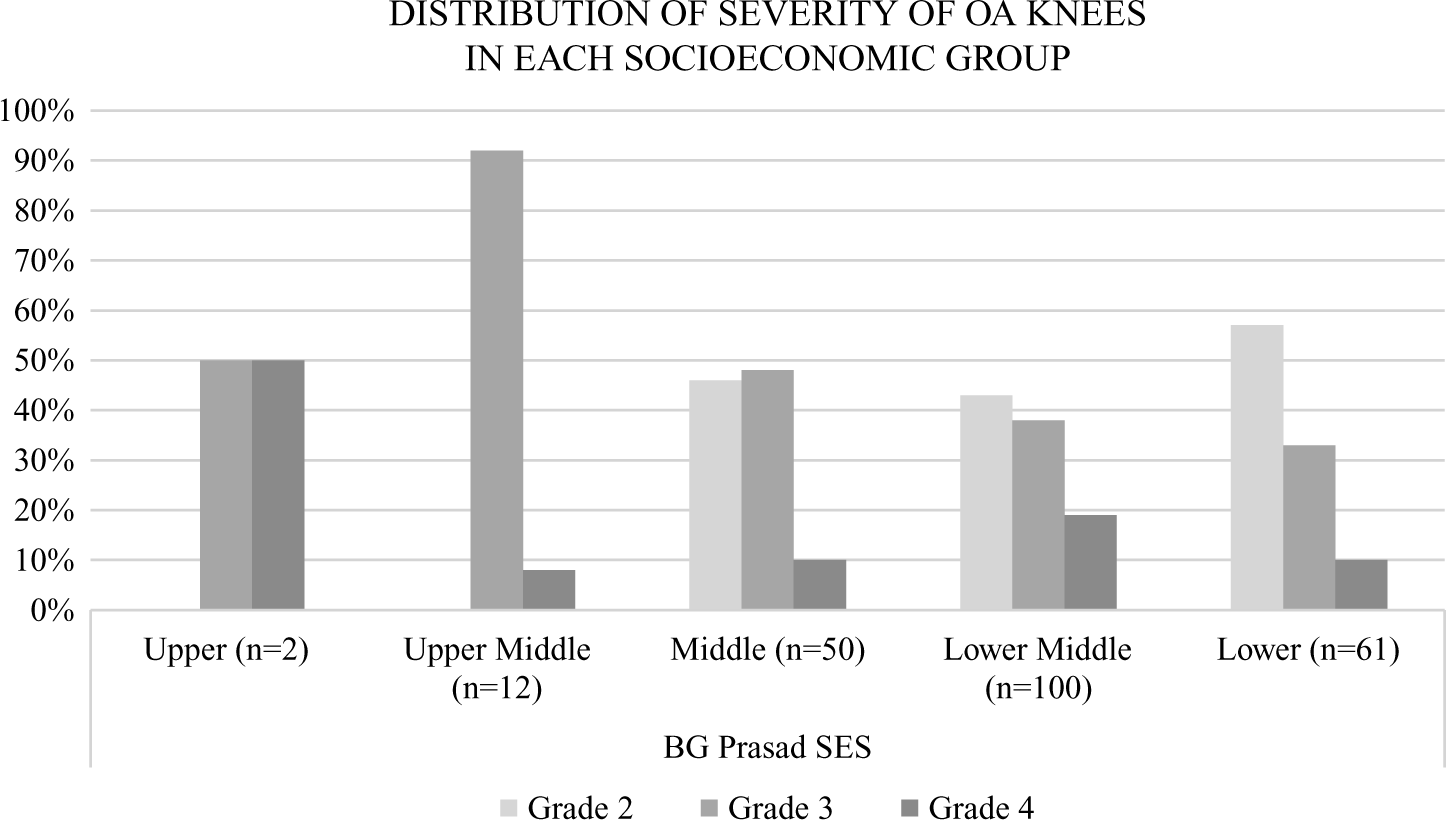 Higher socioeconomic groups had a higher proportion of patients with severe grade knee OA.