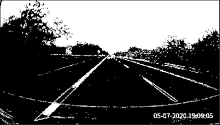 Due to the perspective of a camera mounted on the central region of the ego vehicle’s dashboard when capturing the front view, the lane line segments seem to converge to a point known as the vanishing point problem7 (Figure 4). Perspective transformation is applied to transform the oblique angle into birds-eye view.