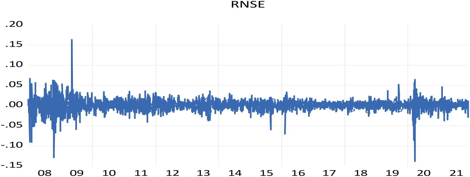 NSE: National Stock Exchange; RNSE: returns of NSE.