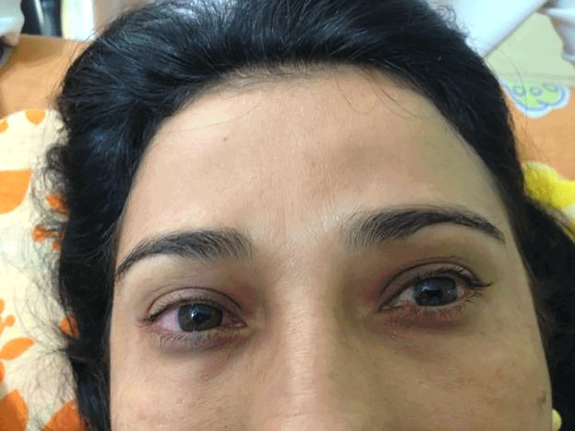The patient began to see better and no longer had blurred vision beginning with the first session. In an initial phase, cervical lymphatic therapy was performed daily and subsequently every other day. The patient’s vision was no longer blurred. Intraocular pressure was reduced to less than 20 mmHg and the ophthalmologist reduced the prescription to two medications. Periorbital edema and hyperemia were normalized. During one weekend, the patient’s vision became blurred again. The patient had spent three days without undergoing therapy. We asked the ophthalmologist to measure her intraocular pressure every two and three days. We found that the pressure was maintained below 20 mmHg when lymphatic therapy was performed every two days, but intraocular pressure increased and the vision became blurred when therapy was performed every three days.