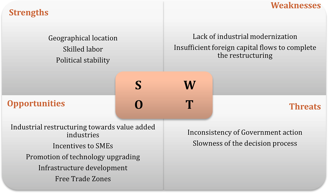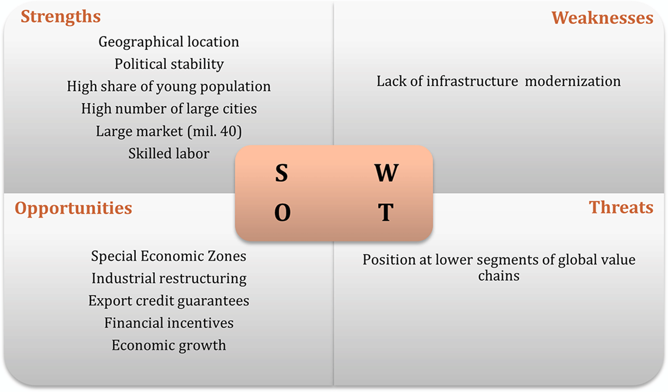 However, Poland displays six strengths, against five for Hungary and three the Czech Republic. Concerning threats, Poland and Hungary share the same: position and low segments of the global value chain; while the Czech Republic presents as threats, some issues related to the political process.