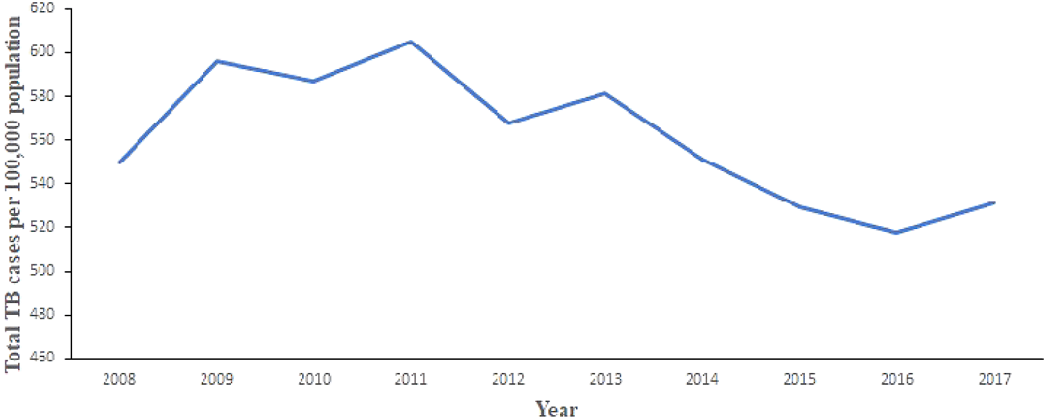 In this study TB detection data obtained from Ghana Health Service and National Tuberculosis Programme was used.8 The data contained information on TB detection from 2009 to 2017, for the 10 old administrative regions of Ghana. These regions include, Ashanti, Brong Ahafo, Central, Eastern, Greater Accra, Northern, Upper East, Upper West, Volta, and Western.