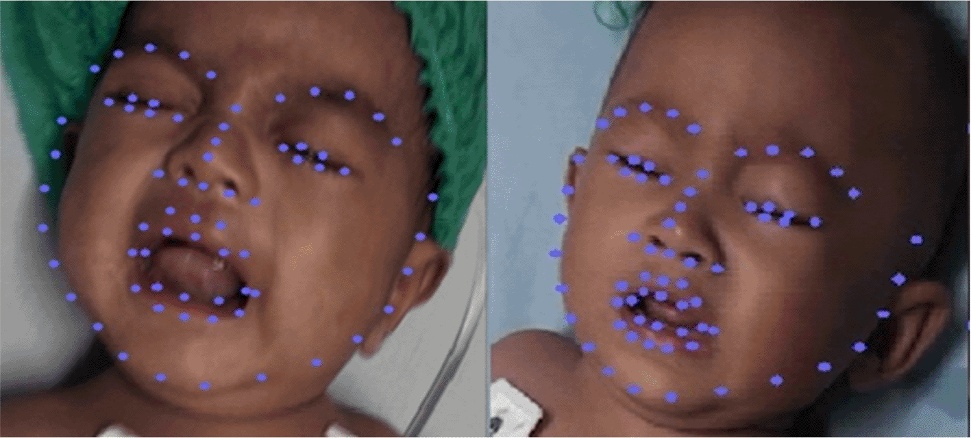 In both studies by Y. Kristian et al.11,12 a cry detection and pain classification system was created. This study used 46 videos taken by E. Hanindito et al.15 and added ten more videos with multiple duration. These studies introduced an ASM for landmarking infant’s face. The ASM was built using the frontal face on the videos as their data to extract hand-crafted geometric features. From these features, they’re able to achieve high accuracy for the infant facial cry detection and pain classifier.
