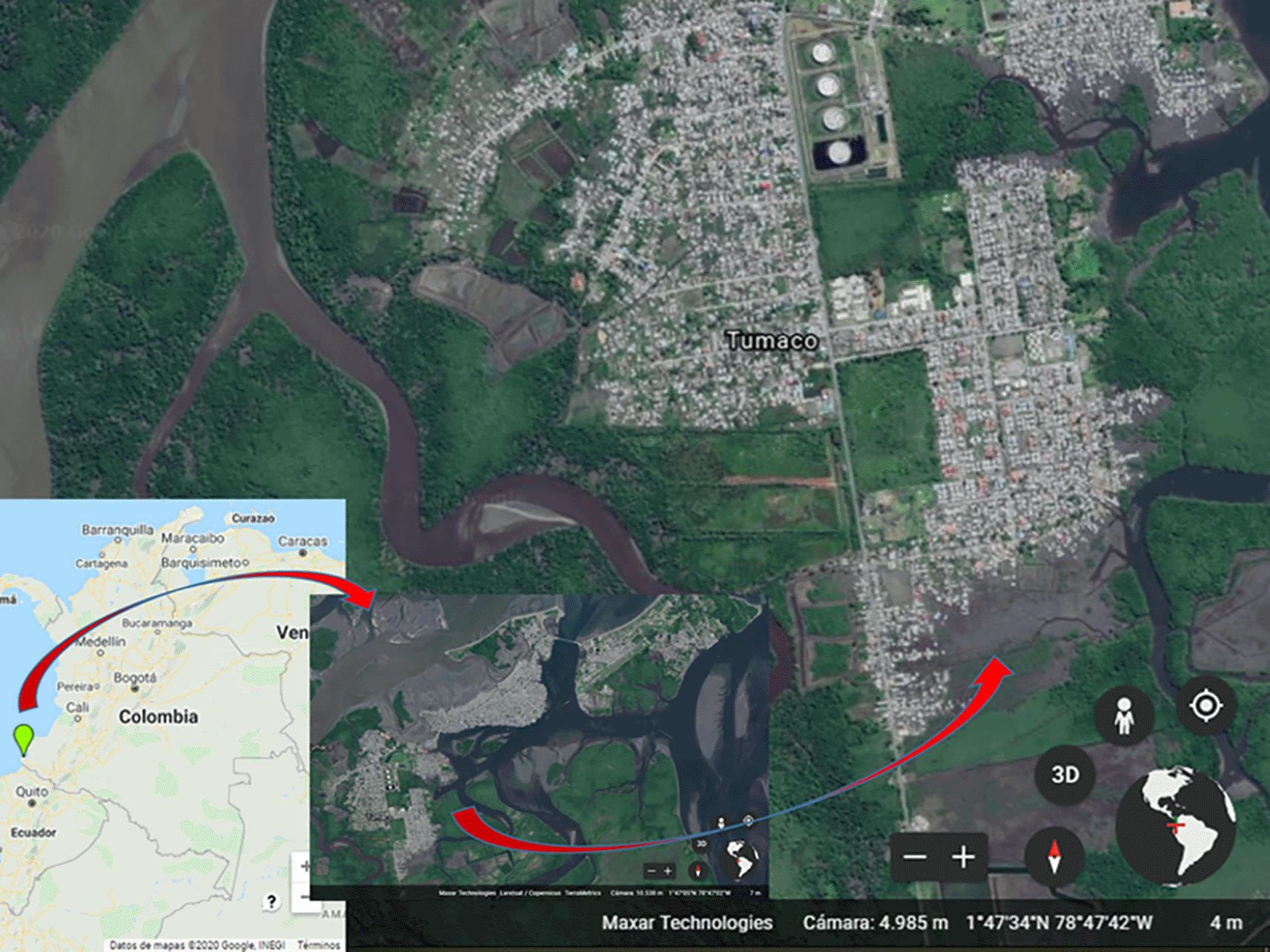 It is worth mentioning that 91% of the Colombian territory has eco-epidemiological conditions that promote malaria transmission and it is estimated that 22% of the population lives in these areas. In 2020, 81,363 cases were registered (annual parasite index (API) 8.4 cases per 1,000 inhabitants) and 5 deaths were confirmed in the country. The predominant parasites were Plasmodium vivax (49.7%) and Plasmodium falciparum (49.5%).4 On the Pacific coast, in the department of Nariño, where Tumaco is located, 17,421 cases were reported (API 31.9 cases per 1,000 inhabitants).4 According to the Vector-Borne Disease Prevention and Control Program, cases of urban malaria have been identified mainly in the neighborhoods that are part of Commune 5 in Tumaco, where 1,024 cases were reported in 2015 (API 42.2 per 1,000 inhabitants) and 770 in 2016 (API 31.7 per 1,000 inhabitants).