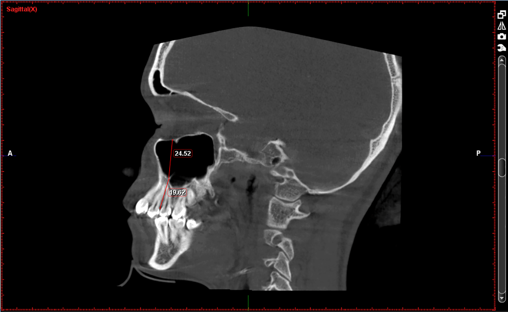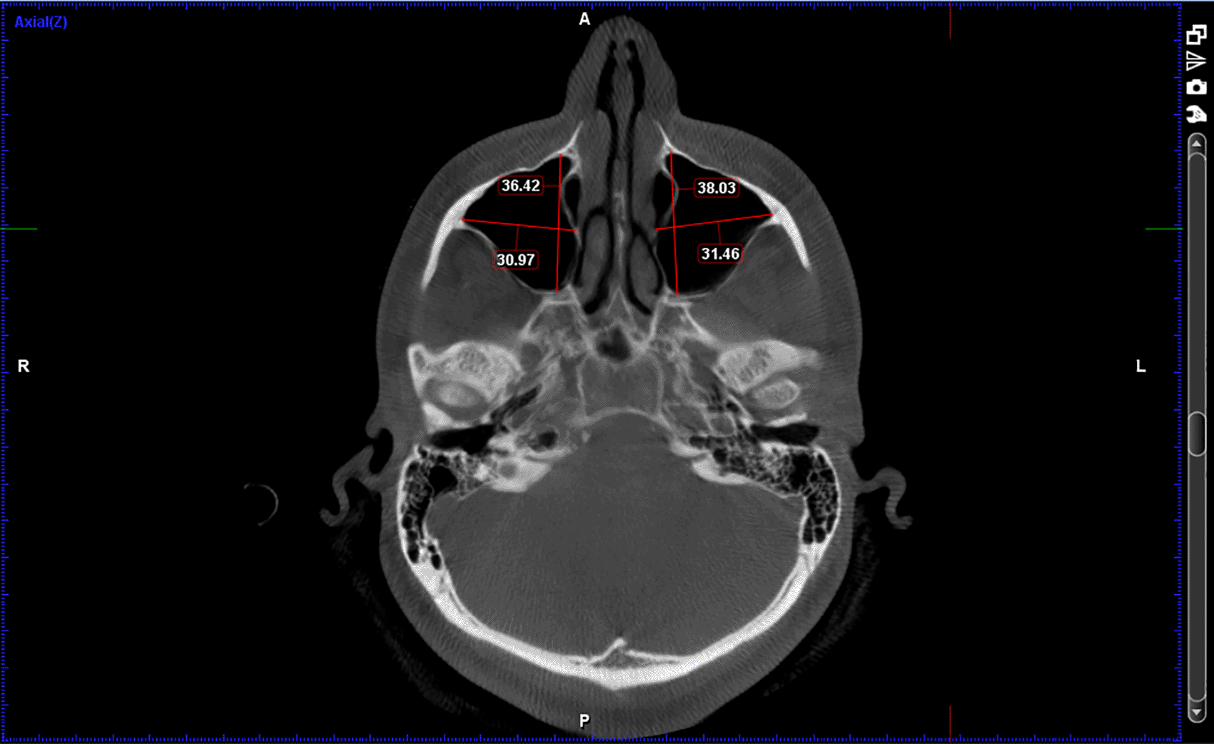 A total of 66 full FOV CBCT scans of patients satisfying inclusion and exclusion criteria were collected from the department archives. The CBCT images were previously obtained with patients written consent for diagnostic purpose using Planmeca ProMax Machine (230-240 V, 50 Hz, 16 A) manufactured by Planmeca OY (Helsinki Finland). The images were in DICOM file format and were analysed using Planmeca Romexis Viewer (Version 5.1.0.4). All the records were analysed by a single observer. Three locations were chosen to measure sinus height and basal bone height: PM1-PM2(between premolars), PM2-M1(between 2nd premolar and 1st molar), M1-M2(between molars).