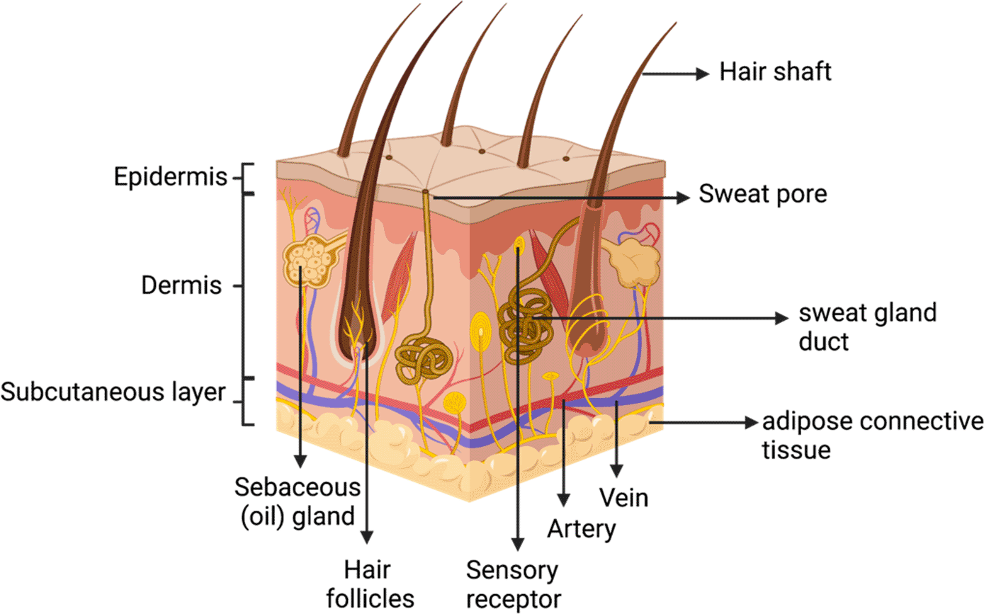 The skin, including the dermis (deeper layer) and epidermis (surface layer), is the most significant barrier between the external environment and the human body.1,2 Skin protects against environmental factors such as harmful UV rays and pathogens and prevents water loss.3
