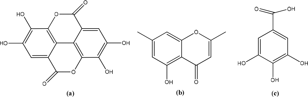 Trapa japonica contains fiber and polyphenols, such as ellagic acid, eugeniin, and gallic acid, which have antioxidant and anti-inflammatory activities (Figure 18). The results showed that the extract of T. japonica decreased the TNF-α, thus significantly decreasing MMP-1 and MMP-9 mRNA expression.39