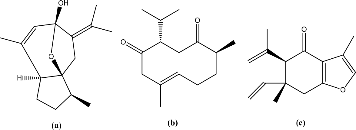 Curcuma amarissima (CA) contains curcumenol, curdione and curzerenone (Figure 22). The results showed that the cell viability test showed that the CA extract increased the viability of HaCaT cells. This increase in cell viability was related to the CA extract’s pharmacological activity in inducing cell proliferation. CA extract rapidly induces ERK1/2 and Akt activation. Consistently, CA extract accelerated cell migration, resulting in rapid healing of the injured human keratinocyte monolayer. In particular, MEK inhibitors (U0126) or PI3K inhibitors (LY294002) blocked CA-induced enhancement of cell monolayer wound-healing. In addition, CA extract induces the expression of Mcl-1, which is an antiapoptotic protein, supporting that the CA extract enhances the survival of human keratinocytes.7