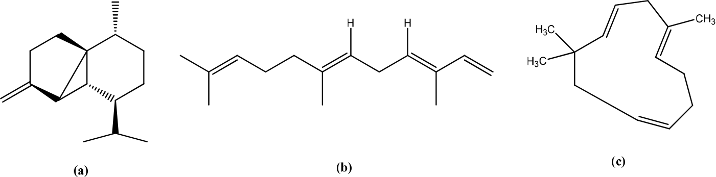 Crassocephalum crepidioides (Benth.) S. Moore contains β-cubebene, α-farnesene, and α-caryophyllene, which exhibit antioxidant and anti-inflammatory activities (Figure 26). C. crepidioides (CC) extract exhibited anti-inflammatory in vitro assays on the macrophage cell line RAW 246.7. In addition, reduced inflammatory cell density in granulation tissue in 7-day-old wounds, combined with decreased TNF-α and NF-B1 mRNA expression. NF-B1 and TNF-α are essential markers for the degree of inflammation. High levels of TNF-α have been reported to inhibit wound re-epithelialization, myofibroblast formation, and smooth muscle actin (SMA-α). The results showed that CC could improve the wound-healing process through its anti-inflammatory activity. TGF-β1 mRNA was also found to be elevated in granulation tissue. TGF-β1 is involved in many essential effects on the wound-healing process. The activities of TGF-β1 include the induction of fibroblast proliferation, motivating the differentiation of fibroblasts into myofibroblasts, and increasing the synthesis, deposition, and maturation of collagen. The increase in the TGF-β1 gene may explain the increase in fibroblasts and the wound-healing effect.45
