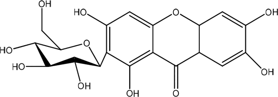 Mangiferin has been isolated from the plant Anemarrhena asphodeloides (Figure 28). A. asphodeloides (AA) extract promoted inhibiting Th2-type cytokines, pro-inflammatory cytokines, and filaggrin restoration in HaCaT cells. TNF-α/IFN-γ significantly increased mRNA expression of IL-4 in HaCaT keratinocytes. However, pretreatment with AA significantly suppressed the mRNA expression of IL-4. AA pretreatment of TNF-/IFNγ-stimulated HaCaT keratinocytes reduced IL-13 mRNA expression. However, pretreatment with AA significantly suppressed the mRNA expression of IL-6 in a dose-dependent manner. These results suggest that AA has a protective effect on skin keratinocytes by inhibiting the transcription of inflammatory cytokine levels associated with skin barrier dysfunction. TNF-α/IFN-γ co-stimulation decreased filaggrin protein expression and mRNA levels, but pretreatment with AA significantly increased filaggrin protein levels, although mRNA levels increased slightly. The results showed that AA had a filaggrin-recovery effect on TNF-α/IFN-γ-stimulated HaCaT keratinocytes. Treatment with AA increased Keratinocyte HaCaT migration and inhibited the expression of iNOS protein levels. It is possible to assume that AA facilitates wound-healing in the skin barrier through the inhibition of overexpression.46