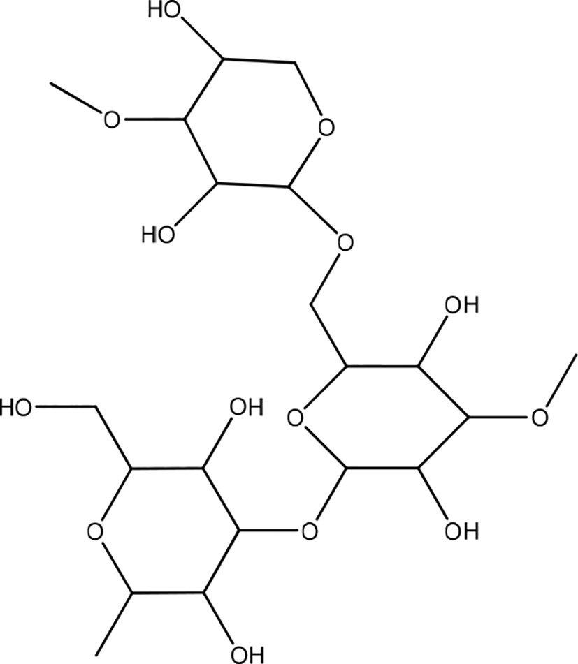 Mimosa tenuiflora bark contains high amounts of saponins and polyphenols such as arabinogalactan (Figure 33). Mimosa tenuiflora (Willd) aqueous extract at concentrations of 10 g/mL and 100 g/mL indicated a loss of cell viability and proliferation of dermal fibroblasts. Isolated, ethanol-precipitated compounds (EPC) (10 g/mL) have shown strong potential to increase viability by stimulating mitochondrial activity and dermal fibroblast proliferation. Stimulation of human keratinocytes was only found at a concentration of 100 g/mL. EPC did not influence the expression of specific proliferation and differentiation-related genes. Fibroblasts in the connective tissue are the main targets of the arabinogalactan polymer compound from Mimosa tenuiflora. Intense fibroblast stimulation can be noted to initiate wound closure and production of extracellular and filling materials within the wound.50
