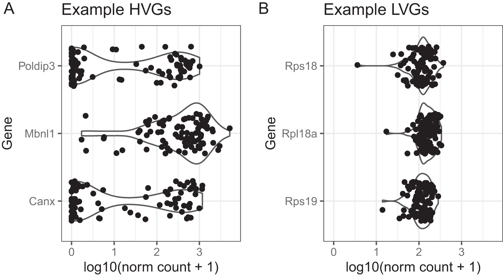 Within a population of cells, BASiCS decomposes the total observed variability in expression measurements into technical and biological components.23 This enables the identification of highly variable genes (HVGs) that capture the major sources of heterogeneity within the analysed cells.17 HVG detection is often used as feature selection, to identify the input set of genes for subsequent analyses. BASiCS can also highlight lowly variable genes (LVGs) that exhibit stable expression across the population of cells. These may relate to essential cellular functions and can assist the development of new data normalisation or integration strategies.8