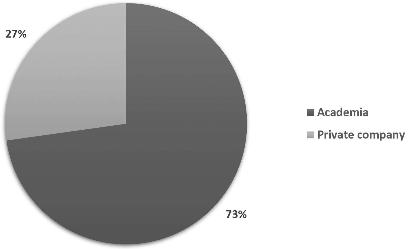 Figure 3 illustrates how patent documents are distributed among holders of different institution types. 73% of the patent documents are held by Academia-related institutions, while private companies presented less than one quarter (24%) of those. The dominant presence of universities in the field suggests that, as stated above, long incubation periods within academia are required for this technology to be ready. Therefore, technology transfer offices and licensing agreements could be fundamental in bringing stem cell technology to society.