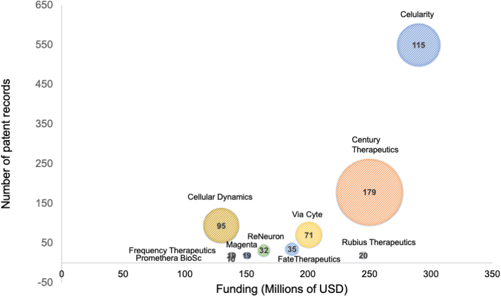 Celularity, a $290 million funded Celgene Corporation spinout with a mature patent portfolio, aims to use placenta-derived stem cells as an alternative approach against blood cancer by developing therapies across autoimmune, degenerative disease, immuno-oncology, and functional regeneration. Noteworthy, Celgene Corporation performed as the seventh most productive institution in the stem cell patent filling landscape.30