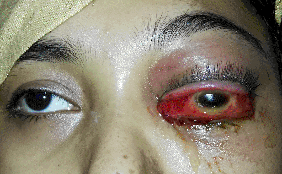 A 22-year-old primigravida, in her third trimester (33 weeks) of gestation, came to us with abrupt, painful vision loss in the left eye coupled with eyelid chemosis, forward bulging of the eye, and purulent discharge for two days.