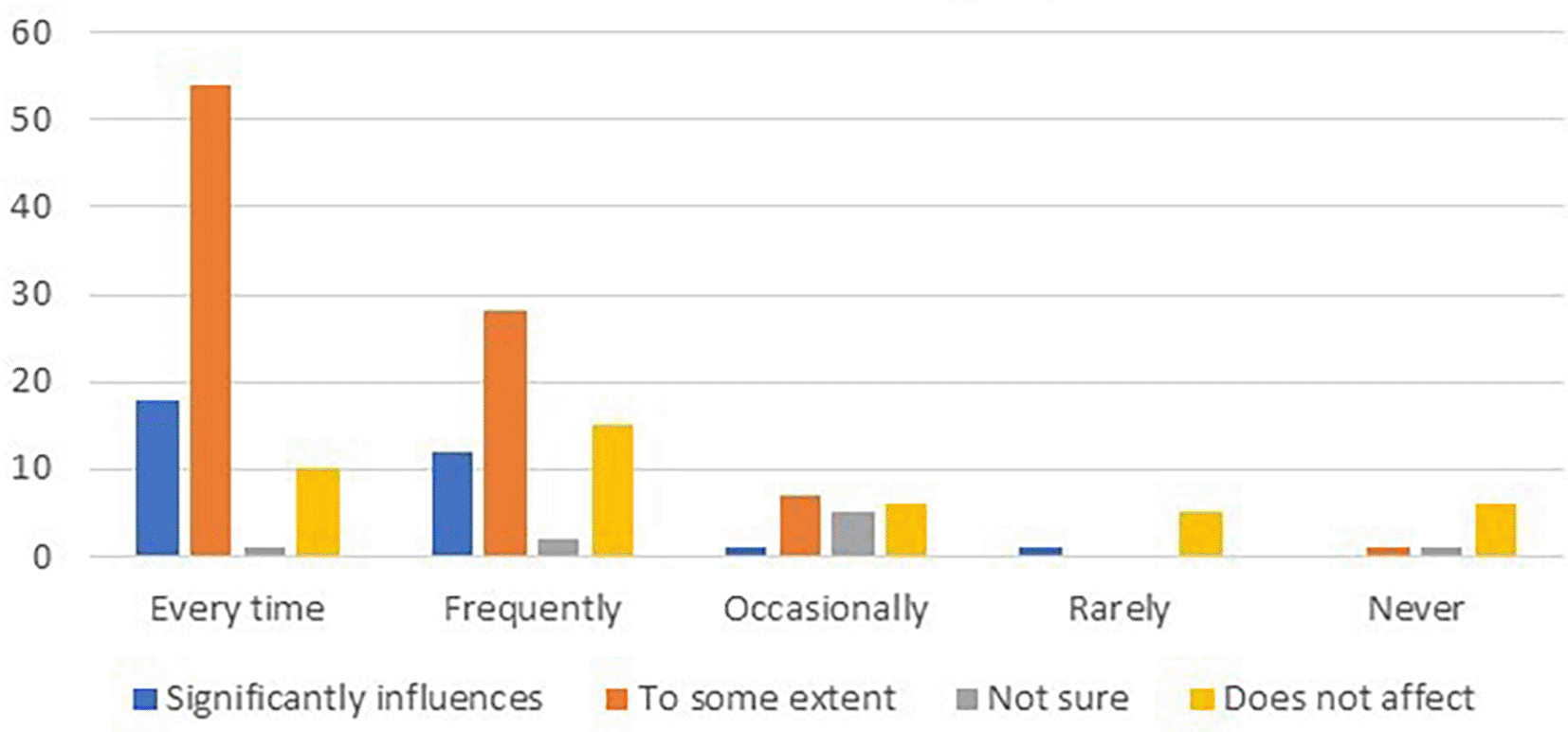 Card usage frequency | Significantly influences | To some extent | Not sure | Does not affect |