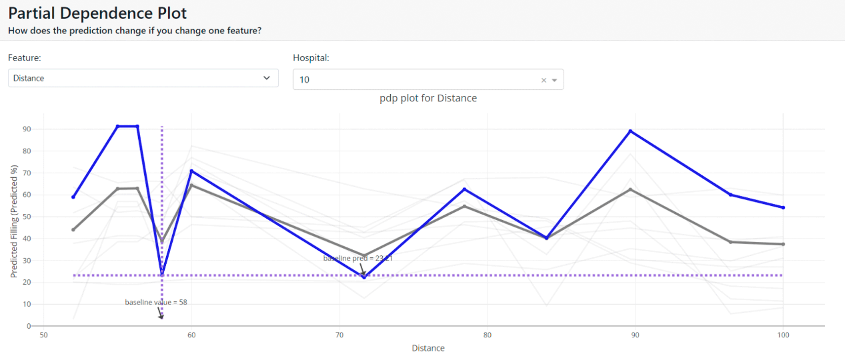 We also use the partial dependency graph to demonstrate how the target variable’s prediction changes as a specific feature varies while holding other features constant. This provides insights into non-linear patterns and interactions between features, allowing us to gain a deeper understanding of how different features affect the model’s predictions in the context of medical waste bin filling levels.