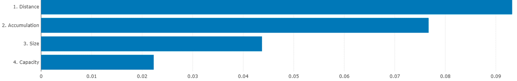 The feature importance analysis technique provides insights into the significance of each input feature in the AI model’s predictions. This process is vital to understand which features (distance between hospitals, hospital size, vehicle capacity, and distance between hospital and warehouse) have the most substantial influence on the model’s performance and how they contribute to the predictions.