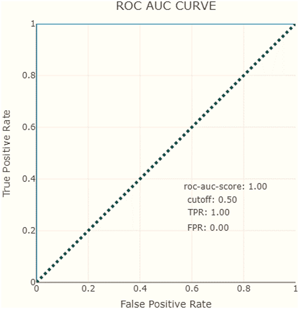 • The AUC is a single numerical value that summarizes the performance of the ROC curve. It represents the area under the ROC curve, with a higher AUC indicating better discrimination between the two classes (filled and unfilled waste bins). A perfect classifier would have an AUC value of 1, while random guessing would result in an AUC of 0.5.