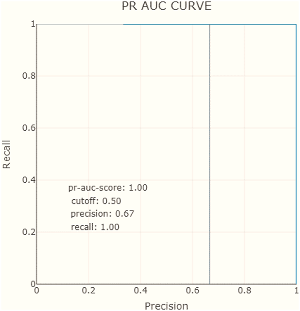 Moreover, we employ the AUC-ROC curve (area under the curve (AUC) of the receiver operating characteristic (ROC)), and PR AUC curve (area under the precision-recall), as essential evaluation measures to assess the performance of our AI model for predicting the filling level of waste bins.