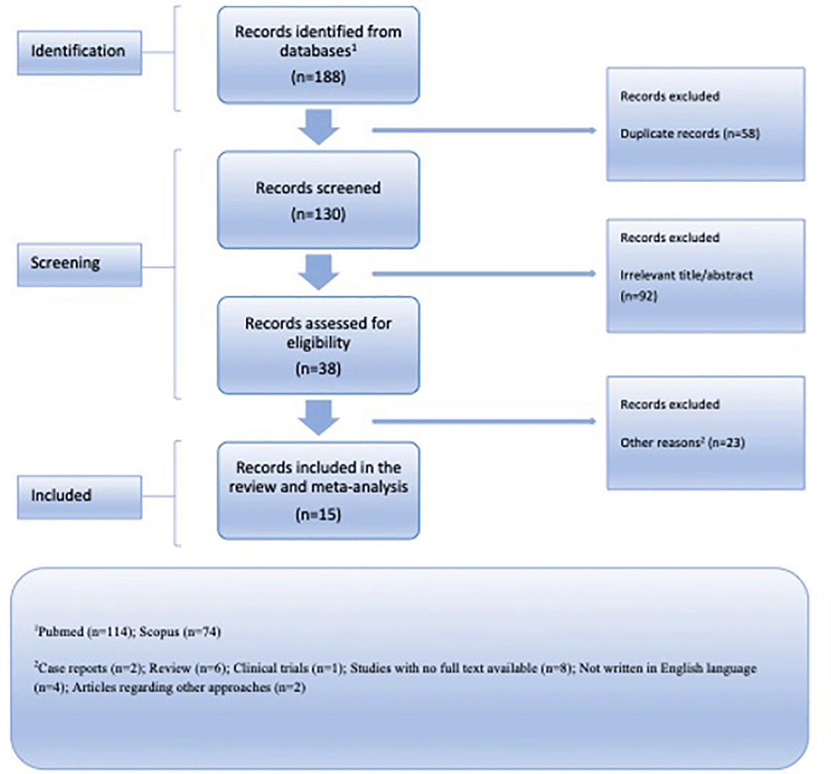 Using RStudio software (version: 2022.12.0+353) by RStudio Team (2022),20 a meta-analysis was executed. The meta-analysis, facilitated by the metafor package,21 involved estimating the pooled prevalence and its associated 95% confidence intervals (CI) using the DerSimonian and Laird random-effects model, complemented by a Freeman-Tukey double arcsine transformation.22 The existence of heterogeneity among studies was assessed by visually examining the forest plot and employing Cochran's Q statistic along with its corresponding p-value. The Higgins I2 statistic, accompanied by its 95% CI, was employed to quantify the extent of genuine heterogeneity in effect sizes. An I2 value falling within the ranges of 0%-40%, 30%-60%, 50%-90%, and 75%-100% denoted insignificant, moderate, substantial and considerable heterogeneity, respectively. To determine if the potential outlying effect sizes were also influential, screening for externally studentized residuals with z-values larger than two in absolute value and leave-one-out diagnostics were performed.23 Due to a paucity of data regarding categorical variables, such as surgeon’s level, subgroup analysis was not performed. In the conducted meta-regression analysis involving continuous variables, an investigation was carried out to assess the influence of publication year and the proportion of male participants as moderators impacting the relevant effect sizes. Due to the limited availability of data on additional continuous variables like the mean age of the patients, the analysis was performed using the aforementioned ones.24 Unless otherwise stipulated, the statistical significance was established at p = 0.05 (two-tailed). Methods designed to assess publication bias, including Egger’s test25 and Begg’s test26 along with the utilization of funnel plots, were originally formulated within the framework of comparative data. These methods operate under the assumption that studies with positive outcomes are more likely to be published than those with negative outcomes. Nevertheless, in a meta-analysis centered on proportions, the criteria for defining a positive result lacks clarity and consensus.27 Consequently, in this current meta-analysis, an evaluative approach was adopted to qualitatively assess potential publication bias.