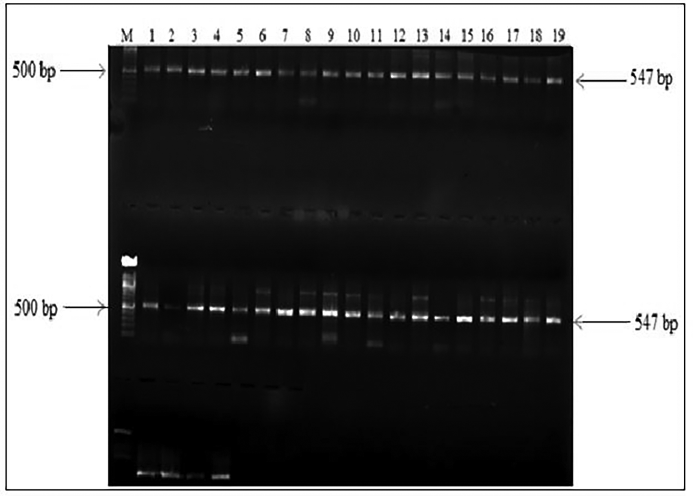 Figshare: PCR amplicon gel electrophoresis, https://doi.org/10.6084/m9.figshare.23815278.v1 (Modise, 2023b).