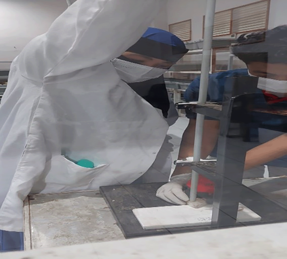 After weighing, the part of the brain case group and control group are included in a 10% neutral buffered formalin (NBF) fixation solution with a ratio of 1:9 for making premortem histopathology preparations. The fixation solution used was 10% formalin (a mixture of 10 cc of 40% formaldehyde with 90 cc of distilled water). The brain organ was immersed in a 10% neutral buffer formalin solution, which serves to provide a hard consistency so that the tissue can be sliced thinly and to provide staining and optical differentiation. The tissue was fixed for 24 hours. Continued with cutting (trimming) organ sample into smaller size. Dehydration using graded ethanol starting from 70%, 90%, and 96%. Purification with xylol solvent. The cleaning process was done by immersing the tissue in a solution of xylene I and II for two hours. Paraffin infiltration is soaking the tissue in melted paraffin at a temperature of 58-60°C for 30 minutes to 6 hours, to remove the clearing agent from the tissue so as to make the tissue resistant to cutting. Blocking is the process of freezing a preparation so that it can be cut with a microtome. Sectioning is cutting the block of preparations using a microtome. The paraffin block was then cut using a rotary microtome with a thickness of 5 μm. Finally hematoxylin eosin (HE) staining and observed under a microscope with 400× magnification. Step by step description of histopathology preparation can be found on Protocols.io).