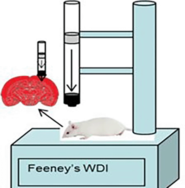 The rat model of traumatic brain injury was made using the Feeney weight drop mode method (Figure 1) by shaving the scalp of the male rat Rattus norvegicus and then topical anesthesia was given before incision. The incision was done on the right frontoparietal measuring 4 mm to get bone exposure. The center of the skin opening was 1.5 mm posterior to the bregma and 2.5 mm lateral to the midline, then the rat was dropped from a height of 1 meter with a 2.5 mm diameter load. The administration of TBI in the study is a routine procedure for animal cases within the animal laboratory of Veterinary Faculty of Syiah Kuala University that implemented the principles of replacement, reduction, and refinement (3R) and also the principles of five freedom from Farm animal welfare council UK, 1993 which consist of (1) freedom from hunger and thirst, (2) freedom from discomfort, (3) freedom from pain, injury and disease, (4) freedom from fear and distress, and (5) freedom to express natural behavior. The procedures are in accordance with the 2017 Health Research Ethics Committee Guideline by the Ministry of Health of Republic of Indonesia and the 2016 Council for International Organization of Medical Sciences (CIOMS) ethical guidelines.