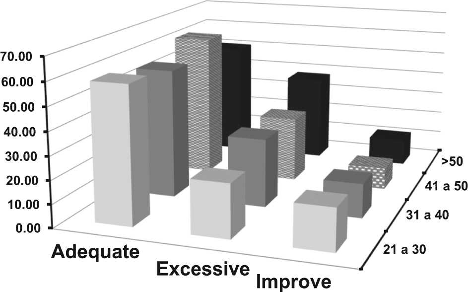 According to the data presented in Figure 3, it is observed that women tend to report higher frequencies of levels of emotional clarity considered “adequate” or “excessive” compared to men. However, in the “improve” category, men surpass women in frequency, suggesting a greater inclination on their part to feel that they need to improve in this aspect.