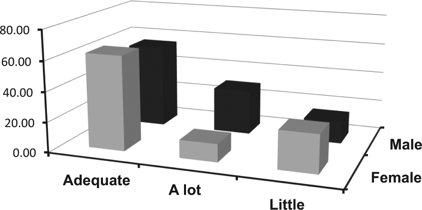 In Figure 2, which illustrates the distribution of attention frequencies according to sex, distinctive patterns are observed in relation to the categories of emotional attention, mainly in the “adequate,” “little,” and “much” categories.
