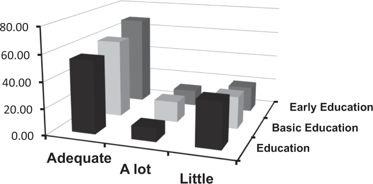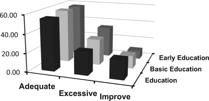 Analysis of the graph reveals that the categories of “adequate” and “excessive” in emotional clarity exhibit a pattern of consecutive increase from students in "Education" to those in "Early Childhood Education" ("Ed. Inicial" in the original text). This finding is consistent with previous research that suggests that certain academic programs, especially those oriented towards initial training in education, may place a stronger emphasis on emotional development (Hodson, 2003; McCoy and Wolf, 2018).