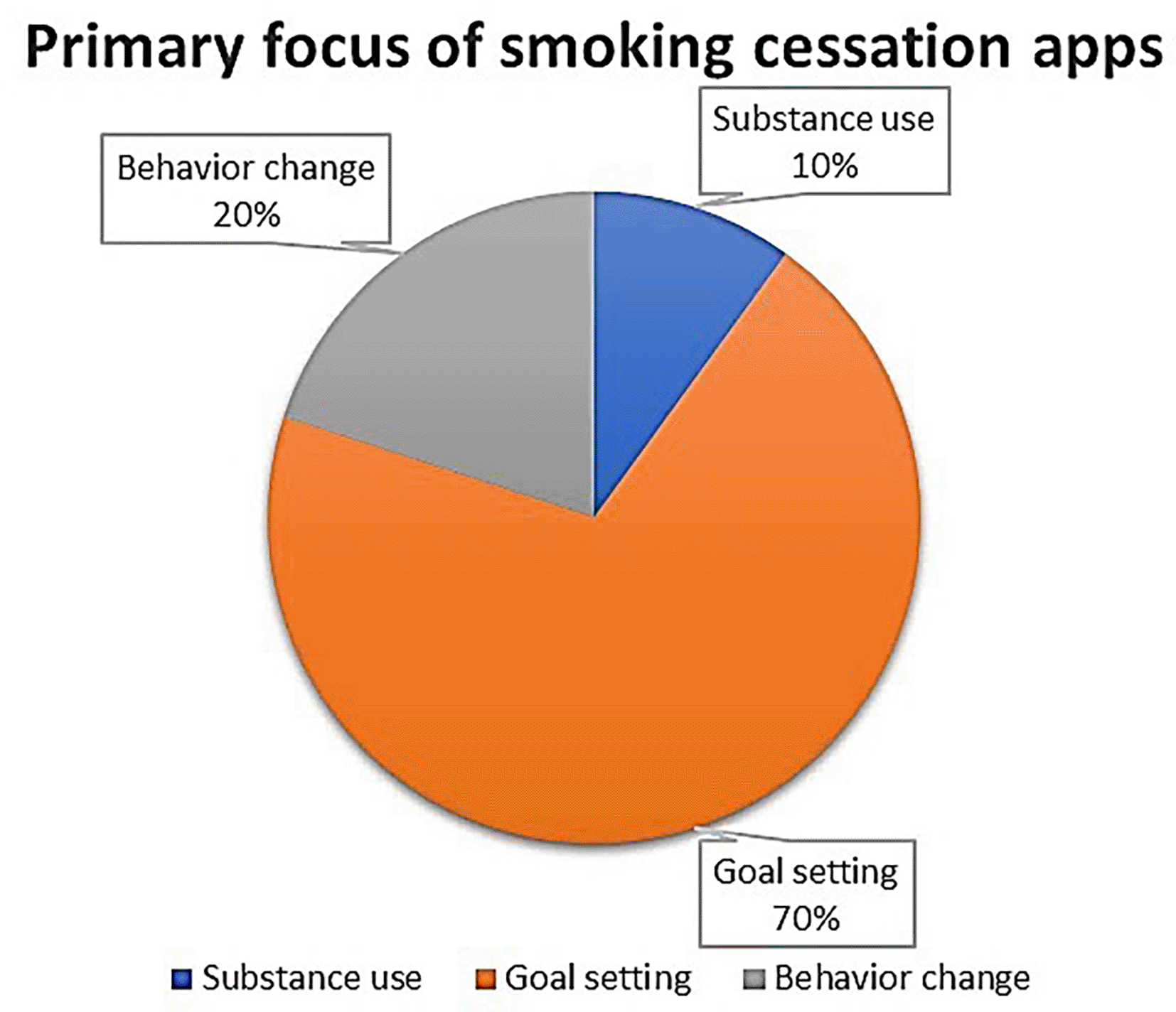 Goal-setting and substance use are two additional crucial components of tobacco cessation applications. These apps function by asking users to enter their cigarette consumption before creating their own objective goals for quitting. The app also offers resources and data to help users track their progress towards their goals and maintain their motivation to stop using tobacco. However, it has been noted that the number of goal-setting apps has dropped over time.