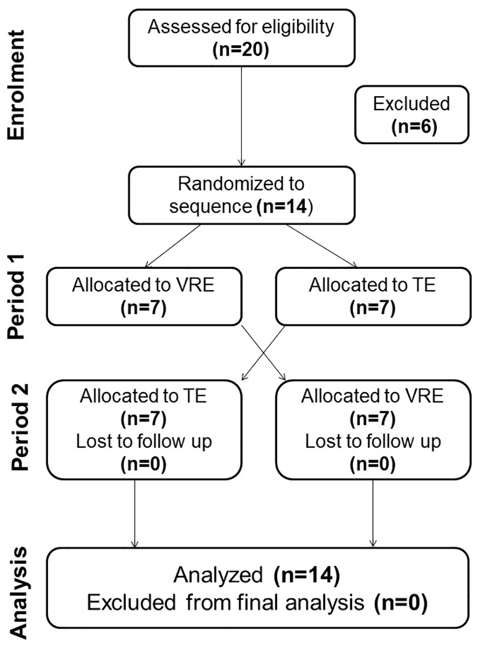 | Traditional exercise/Virtual reality exercise | 14/14 | |