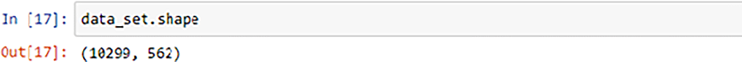 Exploratory data analysis means gaining insights from the data before applying any model to it. It can be done using mathematical functions and visualizations. The total number of rows and columns in a dataset are identified by using the ‘shape’ function. It is shown in Figure 3.