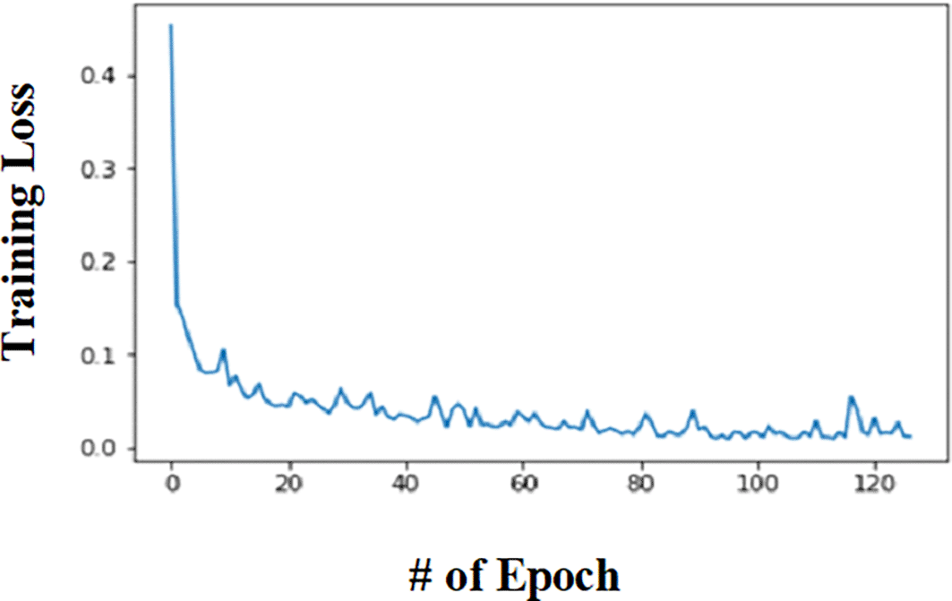 Neural network: The graphical representation of the relationship between epoch and training loss for the human activity dataset is visually depicted in Figure 15. This graph serves as a valuable visual insight into the model’s learning process over successive epochs. Upon close examination of Figure 15, it is evident that the testing loss exhibits a notable decrease, indicating an improvement in the model’s predictive performance. This reduction in testing loss aligns with an observed increase in accuracy, suggesting that the model has become more adept at making accurate predictions on the human activity dataset.
