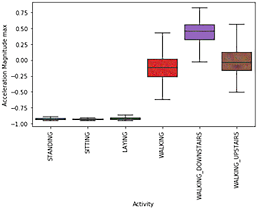 Dataset: In our research endeavor, we drew upon the extensive resources offered by the kaggle, specifically selecting a dataset characterized by its wealth of information pertaining to triaxial acceleration derived from an accelerometer and triaxial angular velocity obtained from a gyroscope. This dataset, comprising a total of 10,299 entries, is distinguished by each entry being defined by a set of 561 features. This curated dataset plays a pivotal role in the domain of machine learning, providing a comprehensive array of features essential for thorough analysis and effective model training.
